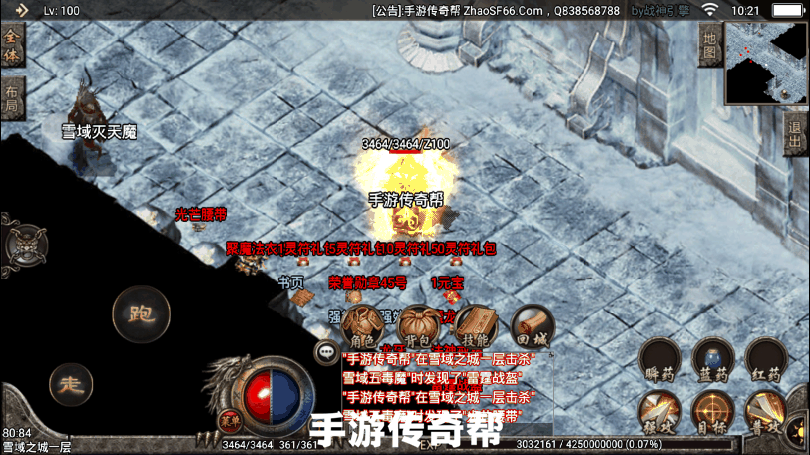 1.80冰雪手游微变服务端经过帮主亲自测试,版本使用战神引擎,配有安卓和苹果系统的客户端,也就是说苹果手机和安卓手机都可以玩这款,版本里面的终极套装有神*冰雪、仙*七彩、魔*火龙系列,装备都非常的漂亮。里面的高级地图有火龙神殿、冰雪仙境、雪域之城、火龙广场、Boss之家、公益地图、超级打宝等,进入游戏的出现:请输入你要进入的名称,写手游帮这个名字,否则就进不去游戏。帮主已经做好版本配套的架设服务器教程,在服务端压缩包里面,你们下载即可看到。