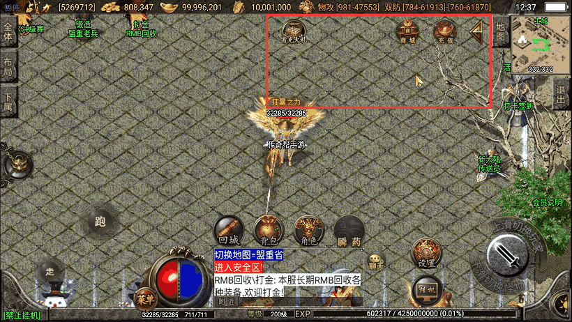 版本修复以后,经过帮主短暂的测试,有自带回收功能+在线回收,但需要购买会员才行,购买按钮就在右上角的VIP特权里面。战士有两个新的技能,分别是随风神掌和莲月剑法,我在测试过程中,把随风神掌介绍为如来神掌(伤害极高),莲月剑法没有搞明白怎么释放。游戏里面技能释放特效也换了全新的补丁,也是一个看点,在庄园里面,有非常多的功能性NPC,游戏里面的新地图、新装备、新怪物和新功能都有增加,总体来说,非常的不错。