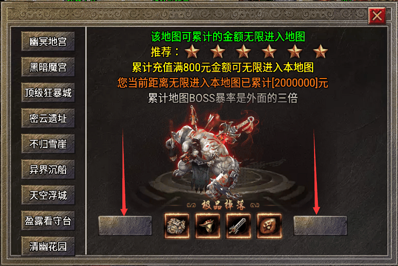 经过反反复复的比对修复工作,最后终于完美的解决了按钮点击打不开的问题,并且里面对应的功能经过帮主亲自测试,全部正常。最后在里面还发现了1个小问题,黑暗魔宫上没有文字,只有按钮图片,这个也已经修复了。至于版本是要出售还是以元宝的方式提供给大家,这个需要等贡献版本的兄弟来决定,主要查看本页上的最新信息。